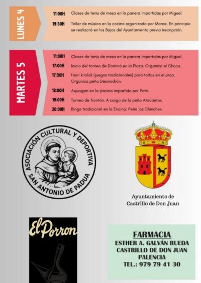 Durante el 4 al 10 de agosto vive las fiestas de Castrillo de Don Juan, unos días llenos de tradición, alegría y buen ambiente. Música, actividades para todas las edades, eventos culturales, gastronomía... ¡y mucha diversión para compartir con vecinos, amigos y visitantes! No lo dejes escapar y disfruta del verano.